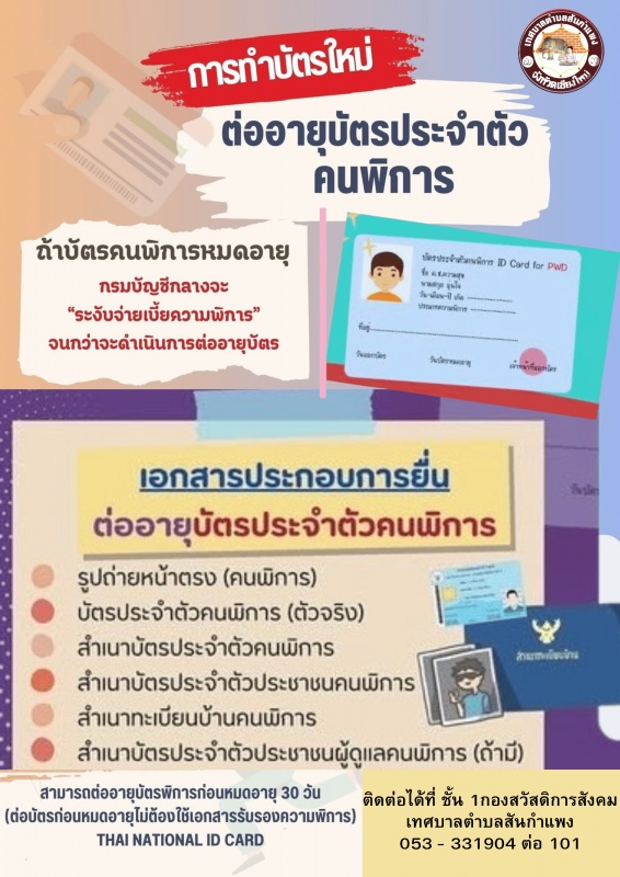 แจ้งประชาสัมพันธ์ให้คนพิการและผู้ดูแลตรวจสอบวันหมดอายุของบัตรประจำตัวคนพิการ