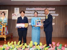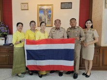รับมอบธงชาติไทย จากนางสุรดา ประดับรัตน์ นางอำนวย ปัญโญสุขและนางจันทร์แรม แก้วกิริยา แม่ดีเป็นศรีของชาติ เพื่อใช้ประดับบนเสาธงเทศบาลตำบลสันกำแพง จากสมาคมส่งเสริมเอกลักษณ์ของชาติสภายุวพุทิกสมาคมแห่งชาติ