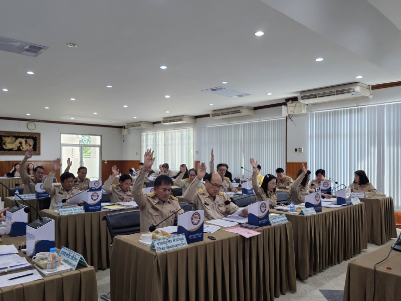 นายอดิเรก ขุนคงมี ประธานสภาเทศบาลตำบลสันกำแพง ดำเนินการประชุมสภาเทศบาลตำบลสันกำแพง สมัยประชุมสามัญ สมัยที่สี่ ครั้งที่ 1 ประจำปี พ.ศ. 2568