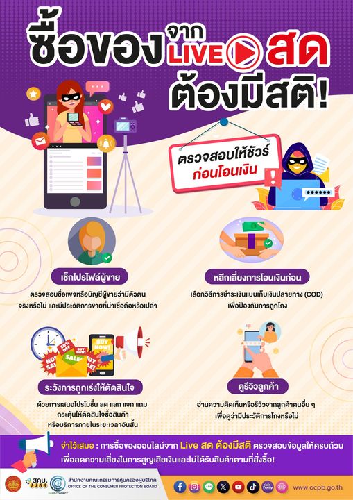 เทศบาลตำบลสันกำแพง ประชาสัมพันธ์การป้องกันการถูกหลอกลวงจากการซื้อค้าผ่าน Live สด