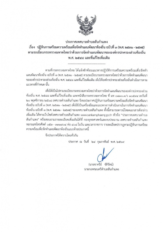 ประกาศเทศบาลตำบลสันกำแพง