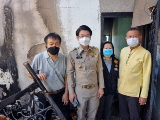 ว่าที่ร้อยตรีปัญญา อุ่นประดิษฐ์ นายกเทศมนตรีตำบลสันกำแพง ลงพื้นที่สำรวจจุดเกิดเหตุเพลิงไหม้