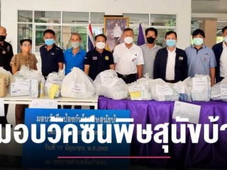 ว่าที่ร้อยตรี ปัญญา อุ่นประดิษฐ์ นายกเทศมนตรีตำบลสันกำแพง พร้อมด้วยคณะผู้บริหาร สมาชิกสภาเทศบาล มอบวัคซีนป้องกันโรคพิษสุนัขบ้าประจำปีงบประมาณ 2565 ให้แก่อาสาปศุสัตว์ในพื้นที่เทศบาลตำบลสันกำแพง