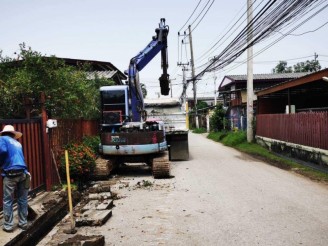 ว่าที่ร้อยตรีปัญญา อุ่นประดิษฐ์นายกเทศมนตรีตำบลสันกำแพง มอบหมายงานกองช่างโครงการปรับปรุงถนนเสริมผิวด้วยแอสฟัสต์คอนกรีต ฯ ถนนสาย สันใต้ - บ้านน้อย