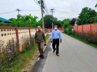 ว่าที่ร้อยตรีปัญญา อุ่นประดิษฐ์ นายกเทศมนตรีตำบลสันกำแพงมอบหมาย ให้นายสุพจน์ แสงฉาย ปลัดเทศบาลฯ ,พร้อม เจ้าหน้าที่กองช่าง ลงพื้นที่สำรวจเตรียมปรับปรุงผิวถนน บริเวณสะพานหลวงปู่คำแสน บ้านดอนมูล