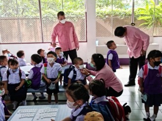 โรงเรียนอนุบาลเทศบาลตำบลสันกำแพง ได้เปิดภาคเรียนวันแรก พร้อมปฏิบัติตามมาตรการป้องกันโรคโควิด-19 อย่างเคร่งครัด
