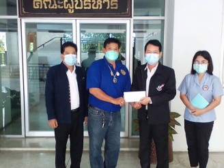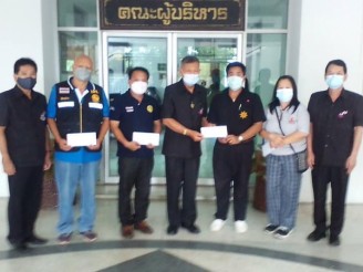 ว่าที่ร้อยตรีปัญญา อุ่นประดิษฐ์ นายกเทศมนตรีตำบลสันกำแพง พร้อมด้วยคณะผู้บริหาร เข้าร่วมพิธีมอบเช็คสั่งจ่าย ให้กับผู้ใหญ่บ้านฝ่ายปกครองท้องที่ สำหรับประชาชน 6 หมู่บ้าน ที่เข้ารับการกักตัว