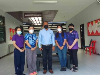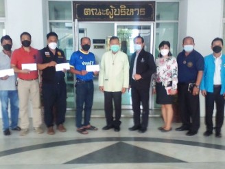 ร่วมพิธีมอบเช็คสั่งจ่าย ให้กับผู้ใหญ่บ้านฝ่ายปกครองท้องที่ สำหรับผู้กักตัว 2 หมู่บ้าน
