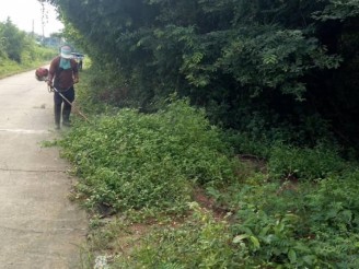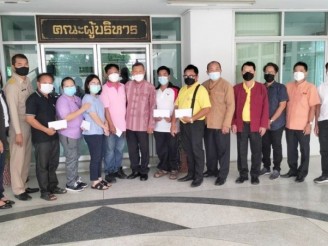 พิธีมอบเช็คสั่งจ่าย ให้กับผู้ใหญ่บ้านแต่ละหมู่บ้าน สำหรับผู้กักตัว 5 หมู่บ้าน