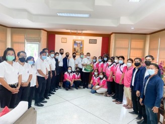 นางวิภา ปิติโรจน์พงศกร ประธานกลุ่มพัฒนาสตรีแม่บ้าน บ้านออนหมู่ที่14 ตำบลสันกำแพง นำสมาชิกกลุ่มเข้าร่วมแสดงความยินดีกับ ว่าที่ร้อยตรีปัญญา อุ่นประดิษฐ์ นายกเทศมนตรีตำบลสันกำแพง