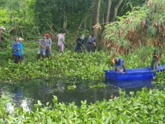 เจ้าหน้าที่กองสาธารณสุขและสิ่งแวดล้อม ดำเนินงานตามแผนปฎิบัติการจัดเก็บวัชพืช ณ บริเวณหนองบวกโจ้ ตำบลสันกำแพง ...