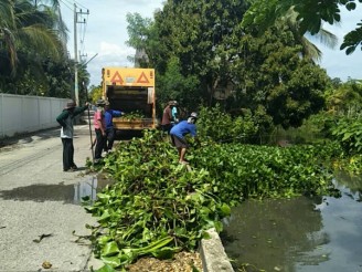 จัดเก็บผักตบชวา ป้องกันแก้ไขปัญหาสิ่งแวดล้อม