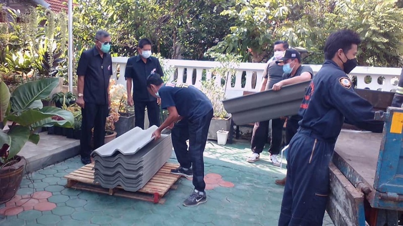 ว่าที่ร้อยตรีปัญญา อุ่นประดิษฐ์ นายกเทศมนตรีตำบลสันกำแพง พร้อมด้วยคณะผู้บริหาร ร่วมมอบวัสดุอุปกรณ์ประเภท กระเบื้องมุงหลังคาบ้านหมู่ที่2 หมู่ที่4 และหมู่ที่11 ตำบลสันกำแพง