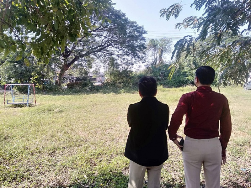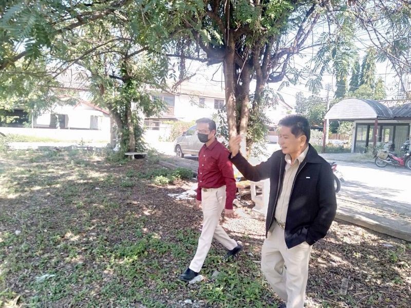 นายสมชาติ มหาวงศ์ทอง เลขานุการนายกเทศมนตรี และนายชูพงศ์ ธนพรหมาวิวัฒน์ รองปลัดเทศบาล ตรวจสถานที่โครงการหมู่บ้านขวัญเวียง ม.11 ต.สันกำแพง ซึ่งได้ปลดภาระจำยอม และอุทิศให้เป็นทางสาธารณะ