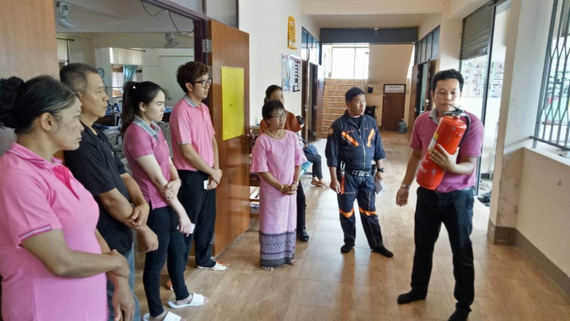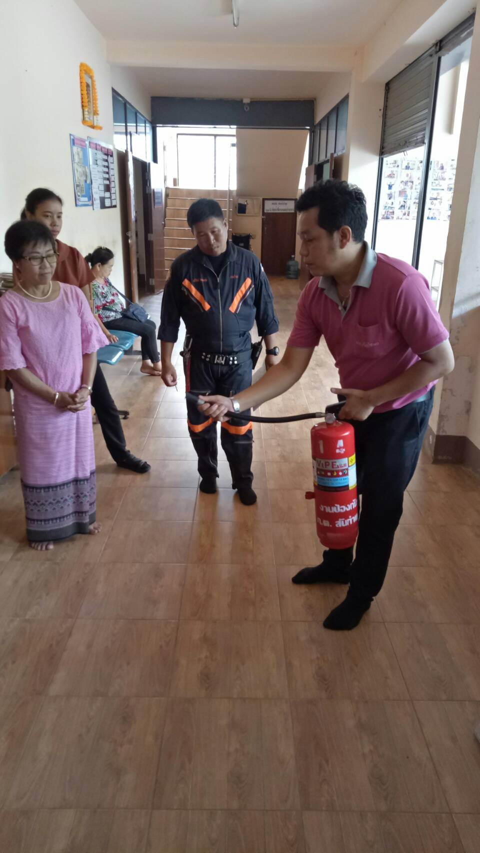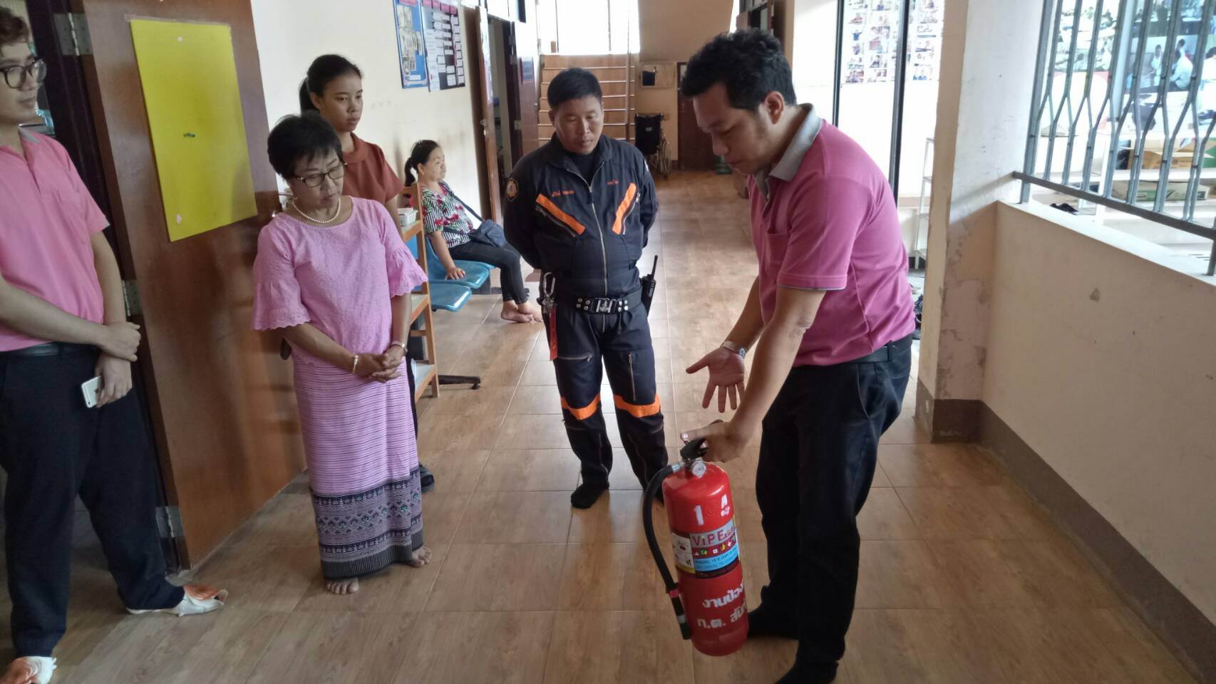 สาธิตอุปกรณ์ระงับอัคคีภัยให้กับเจ้าหน้าที่ศูนย์ฯวัดโรงธรรม