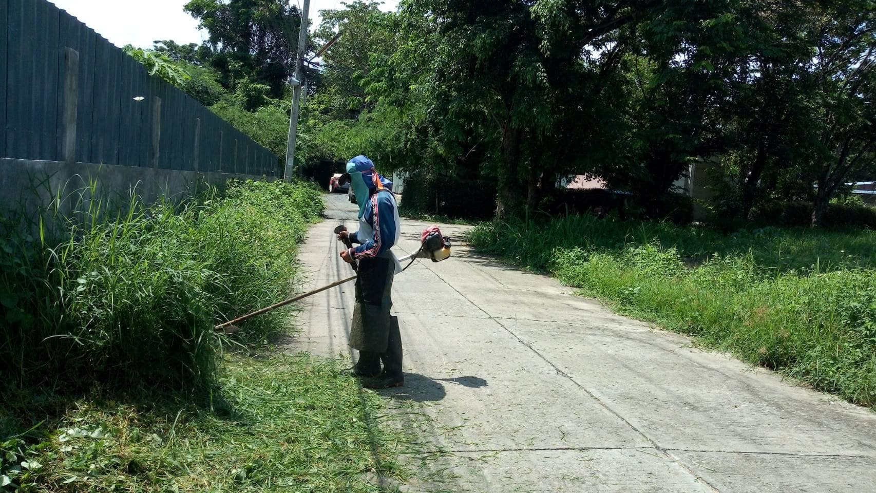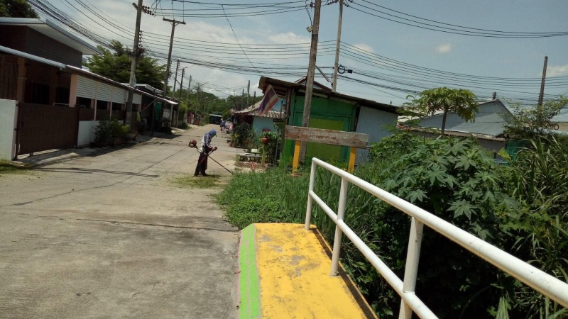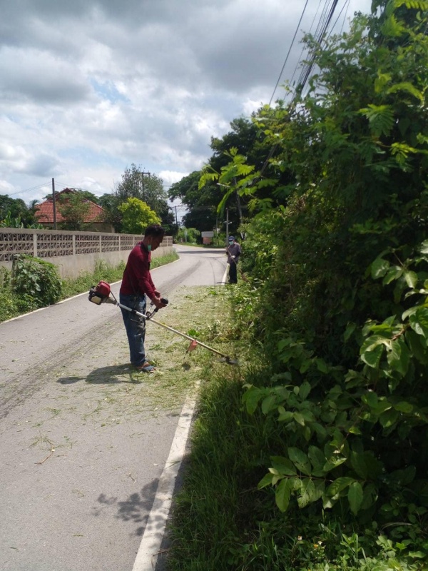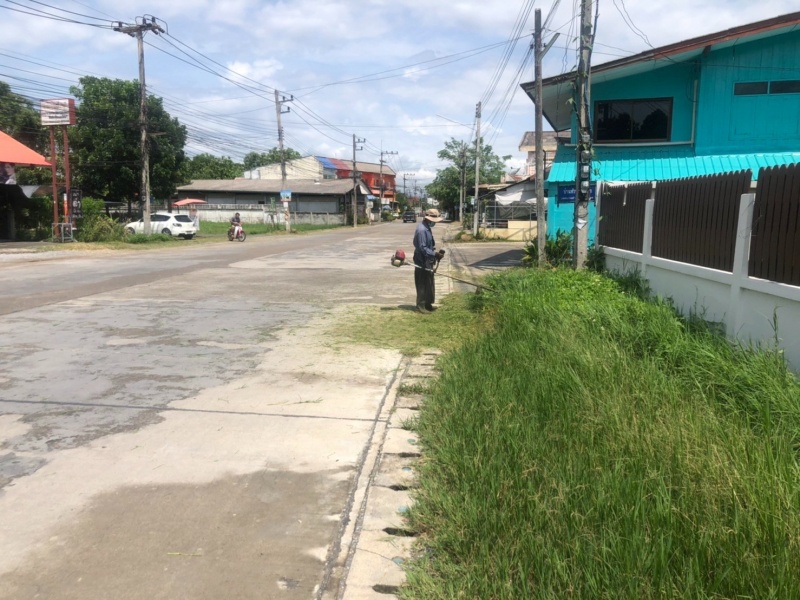 ดำเนินการตัดหญ้าบริเวณพื้นที่สาธารณะสองข้างทาง