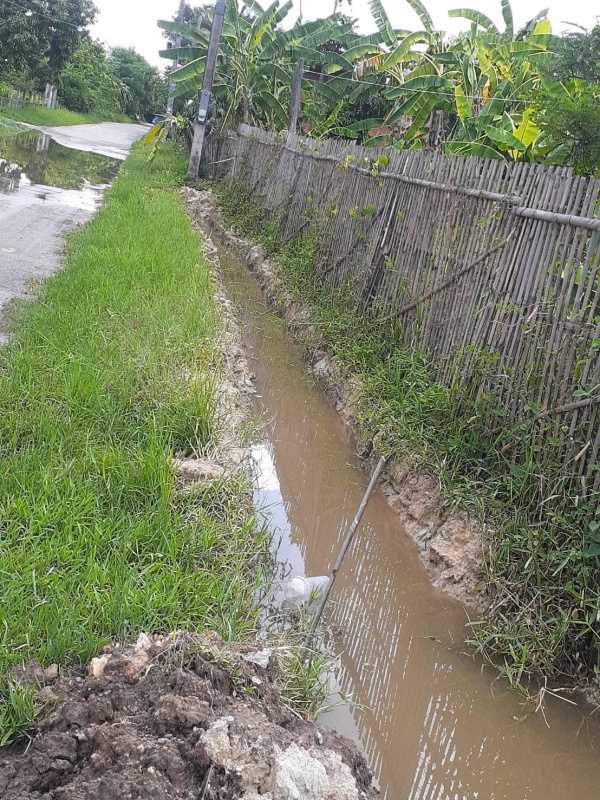 ดำเนินการเปิดฝารางระบายน้ำ ที่บ้านคำซาว หมู่ที่4 ต.สันกำแพง เพื่อระบายน้ำที่ขังออก