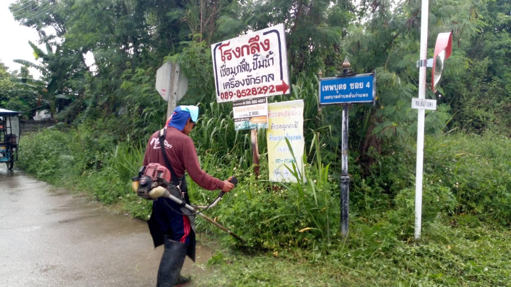 -ดำเนินการตัดหญ้าบริเวณ ซอย 4 เทพบุตร บ้านสันใต้ ต.สันกำแพง