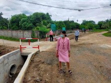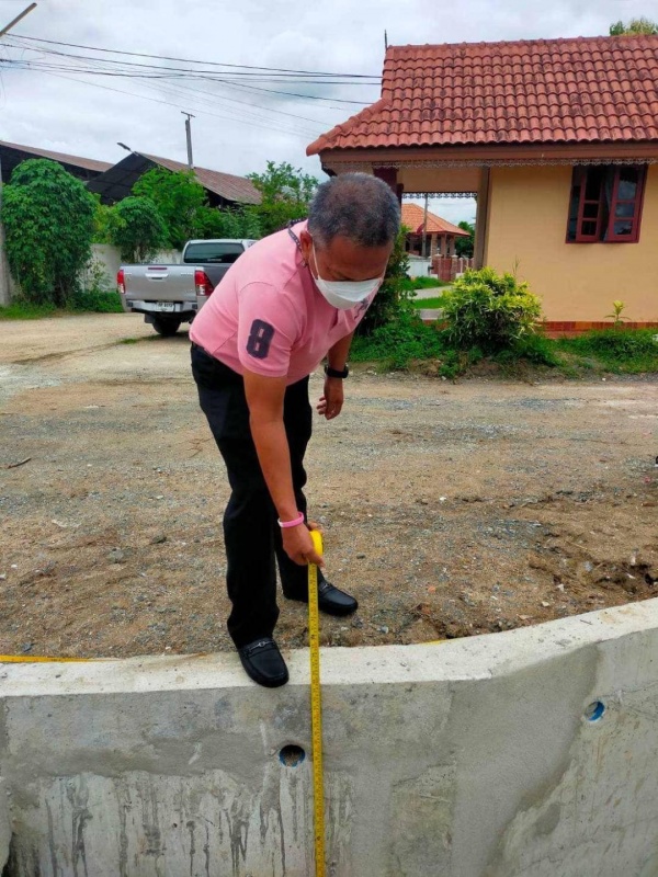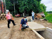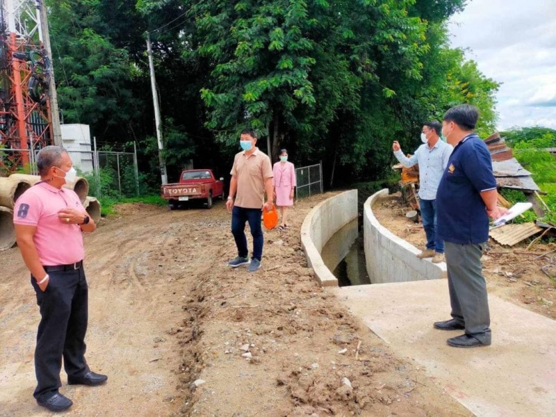 นายสุพจน์ แสงฉาย ปลัดเทศบาลฯ ,พร้อม นางสาววรากร พาจรทิศ หัวหน้าสำนักปลัดฯ ,เจ้าหน้าที่กองช่าง ลงพื้นที่ตรวจรับโครงการก่อสร้างรางระบายน้ำ ค.ส.ล. บริเวณลำเหมืองสาธารณประโยชน์ ท้ายซอย 4 บ้านเหว หมู่ 2