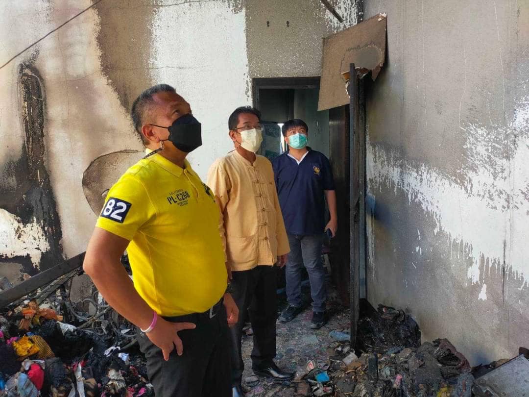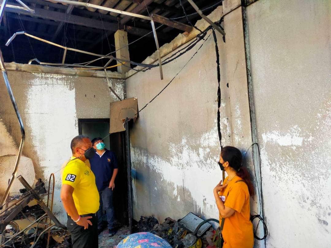 นายสุพจน์ แสงฉาย ปลัดเทศบาลฯ พร้อมนายวิศณุ มันตะสูตร ผู้อำนวยการกองช่าง และวิศวกร กองช่าง ลงพื้นที่ตรวจความเสียหายเหตุเพลิงไหม้ ร้านถ่ายภาพ "สงวนโฟโต้" หมู่ที่ 8 ตำบลสันกำแพง