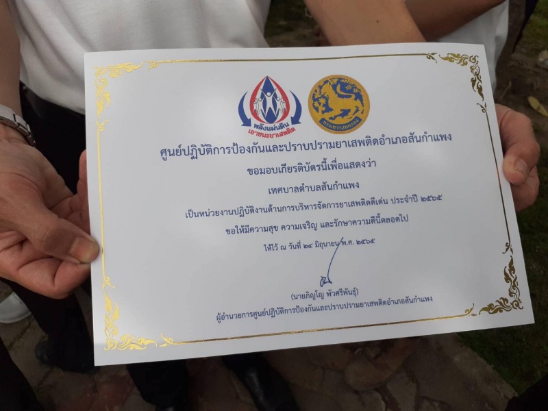 ภายใต้การบริหารงานของว่าที่ร้อยตรีปัญญา อุ่นประดิษฐ์ นายกเทศมนตรีตำบลสันกำแพง มอบหมายให้เจ้าหน้าที่พนักงานเทศบาลร่วม กิจกรรมรณรงค์ต่อต้านยาเสพติด ณ ศูนย์ราชการอำเภอสันกำแพง