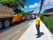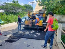 ว่าที่ร้อยตรีปัญญา อุ่นประดิษฐ์ นายกเทศมนตรีมอบหมาย ให้นายสุพจน์ แสงฉาย ปลัดเทศบาลฯ ลงพื้นที่สำรวจโครงการปรับปรุงผิวถนนโดยการปูทับ (overlay) ด้วยแอสฟัลฟ์ติกคอนกรีต บริเวณถนนสายสันใต้-บ้านน้อย