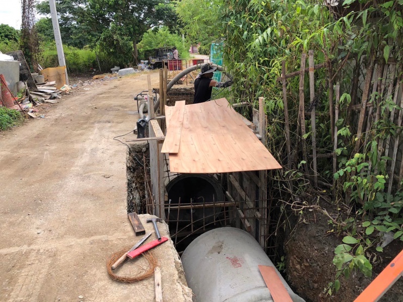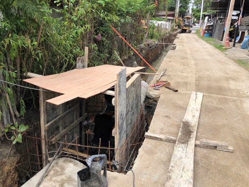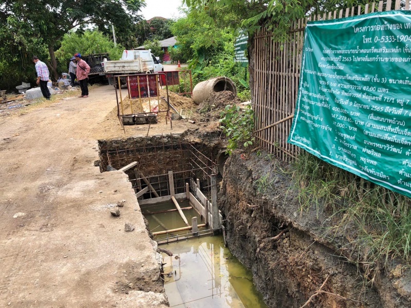 - ดำเนินงานประกอบแบบสำหรับเทผนังบ่อพักจำนวน 1 บ่อพร้อมเจาะแนวรางระบายน้ำเพิ่มเติม งานวางท่อพร้อมบ่อพัก ซอยเทพธิดา บ้านตลาด ม.7 สันกำแพง
