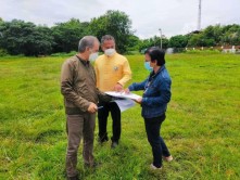 นายสุพจน์ แสงฉาย ปลัดเทศบาลตำบลสันกำแพง พร้อมด้วยรองปลัดเทศบาลฯ ผอ.กองช่างลงพื้นที่สำรวจโครงการก่อสร้างอาคารอเนกประสงค์ (รูปตัวแอล)บ้านสันโค้งใหม่ หมู่ที่ 2