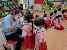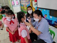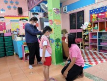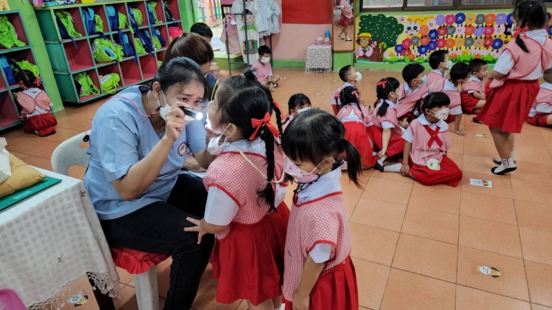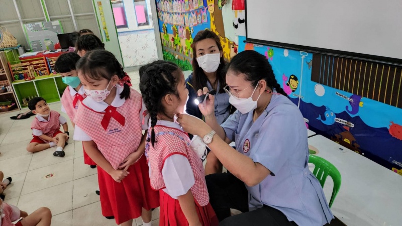 ว่าที่ร้อยตรีปัญญา อุ่นประดิษฐ์ นายกเทศมนตรีตำบลสันกำแพง นางสาววิจิตรา จิตรธรรม พยาบาลวิชาชีพปฏิบัติการ ออกตรวจสุขภาพเด็กปฐมวัย ตามโครงการส่งเสริมสุขและอนามัยโรงเรียน ณ โรงเรียนบ้านสันกำแพง ชั้น อ.3/1, อ.3/3
