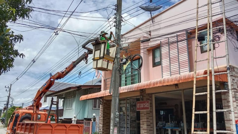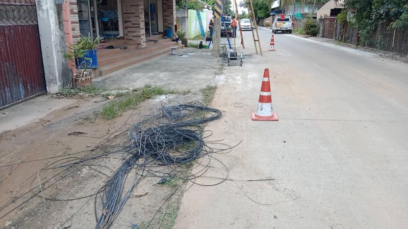 - ซ่อมแก้ไขสายไฟกิ่งซ๊อตไหม้ ม.2ป่าเห็วเกิดจากสายสัญญานช็อตไหม้