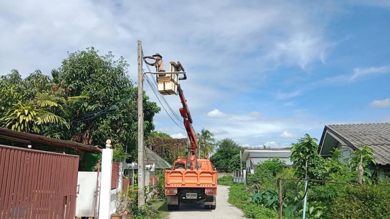 - ซ่อมไฟกิ่งต้นหน้าบ้านคุณ สายันต์ ม.4 สกพ.ในซอย5 ฟิวกู๊ด