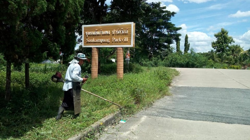 - ตัดหญ้าทางเข้าสันกำแพงปาร์ควิลล์