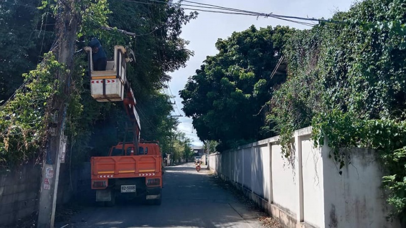- ซ่อมไฟต้นในซอยเทพธิดา ม.7 สกพ.หลังชินวัตร
