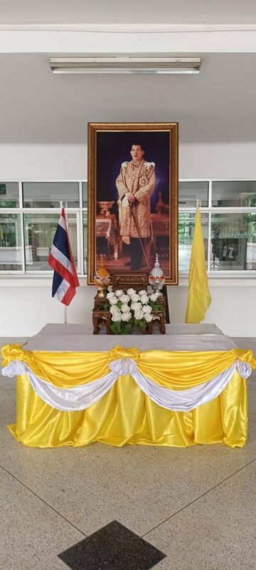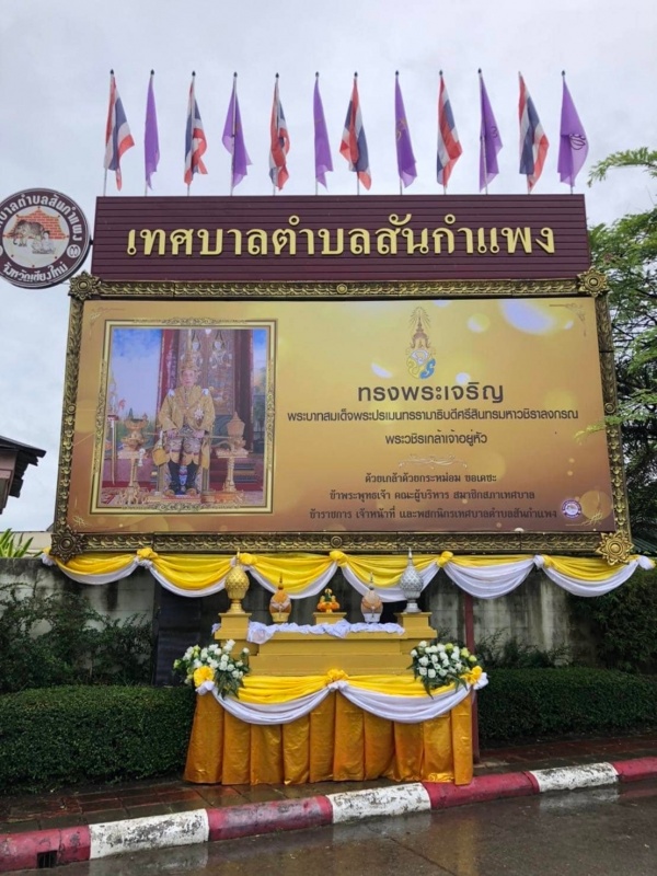 ว่าที่ร้อยตรีปัญญา อุ่นประดิษฐ์ นายกเทศมนตรี มอบหมาย กองการศึกษา ติดตั้งป้ายเฉลิมพระเกียรติ จัดโต๊ะหมู่ประดิษฐานพระบรมฉายาลักษณ์ พระบาทสมเด็จพระเจ้าอยู่หัว พร้อมเครื่องราชสักการะบริเวณอาคารสำนักงาน