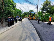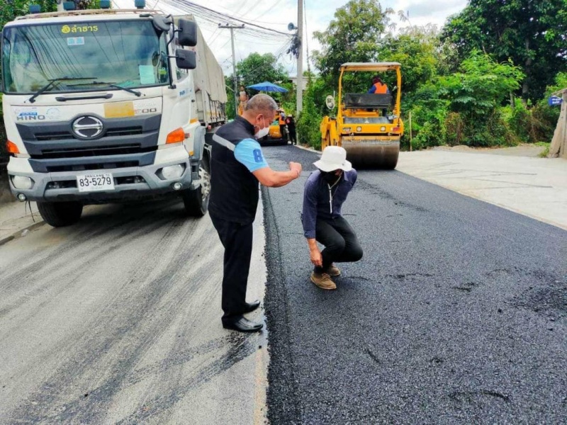นายสุพจน์ แสงฉาย ปลัดเทศบาลฯ ลงพื้นที่สำรวจโครงการปรับปรุงผิวถนนโดยการปูทับ (overlay) ด้วยแอสฟัลฟ์ติกคอนกรีต บริเวณถนนสายสันใต้-บ้านน้อย บ้านสันใต้ หมู่ที่ 8,9 ตำบลสันกำแพง