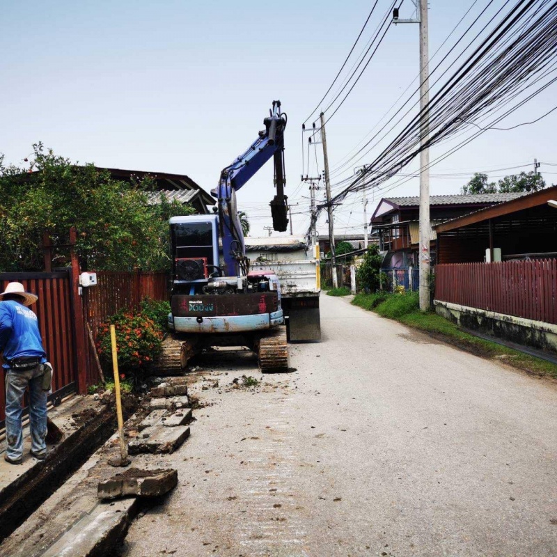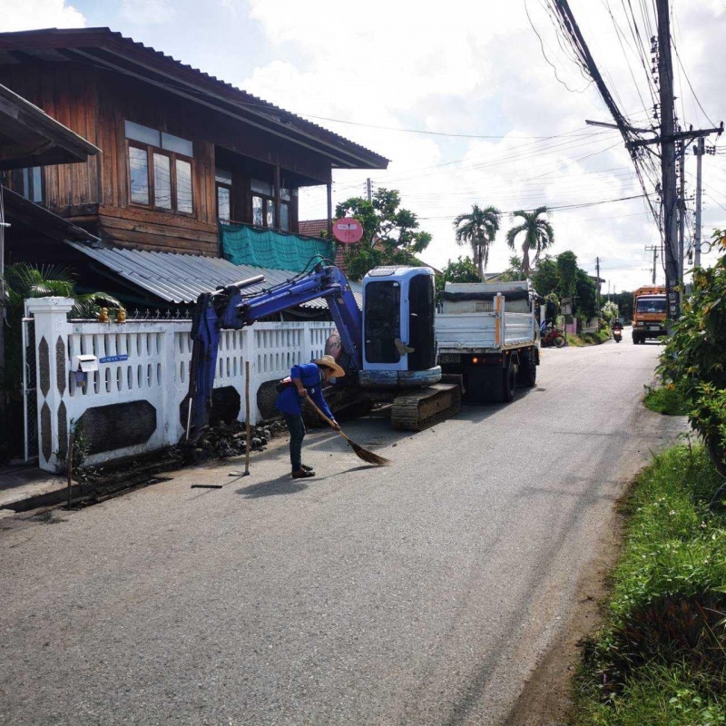 ว่าที่ร้อยตรีปัญญา อุ่นประดิษฐ์นายกเทศมนตรีตำบลสันกำแพง มอบหมายงานกองช่างโครงการปรับปรุงถนนเสริมผิวด้วยแอสฟัสต์คอนกรีต ฯ