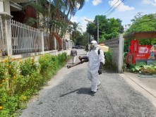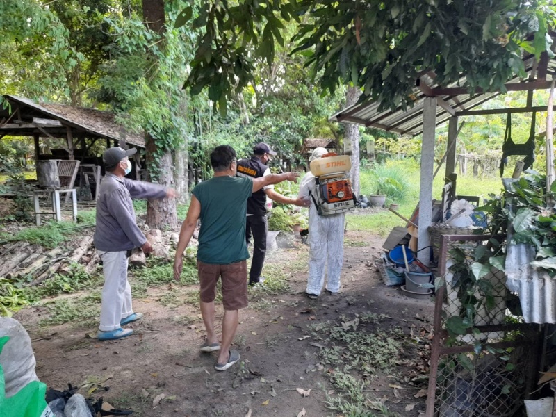 ว่าที่ร้อยตรีปัญญา อุ่นประดิษฐ์ นายกเทศมนตรีตำบลสันกำแพงมอบหมายให้เจ้าหน้าที่สาธารณสุขปฏิบัติงานพ่นยาไข้เลือดออก หมู่5 ตำบลทรายมูล