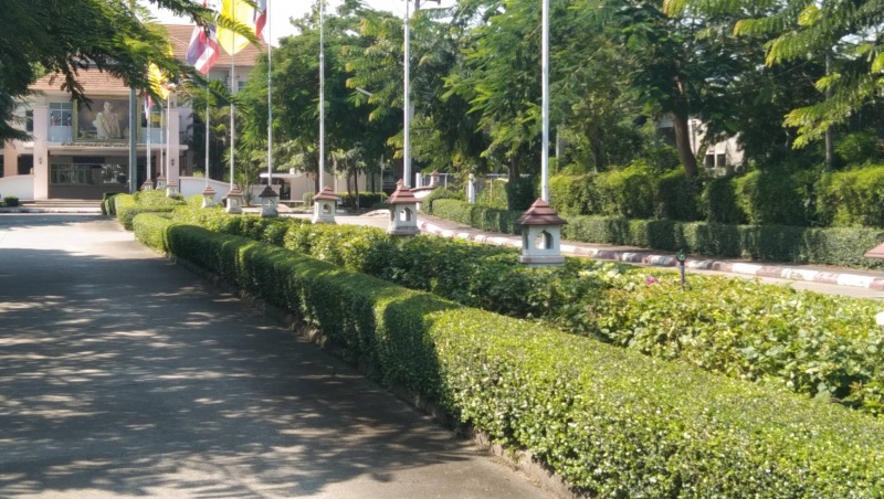 *ชุดตัดหญ้าตัดแต่งต้นชา บริเวณทางเข้าเทศบาลฯ