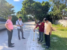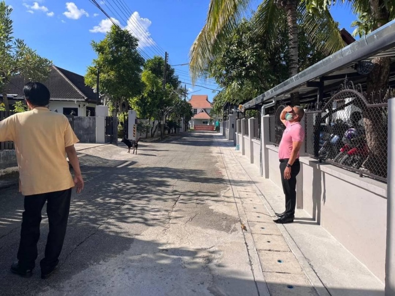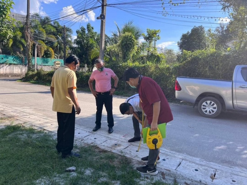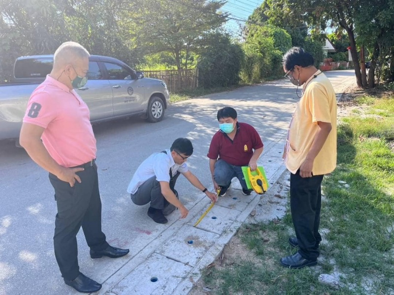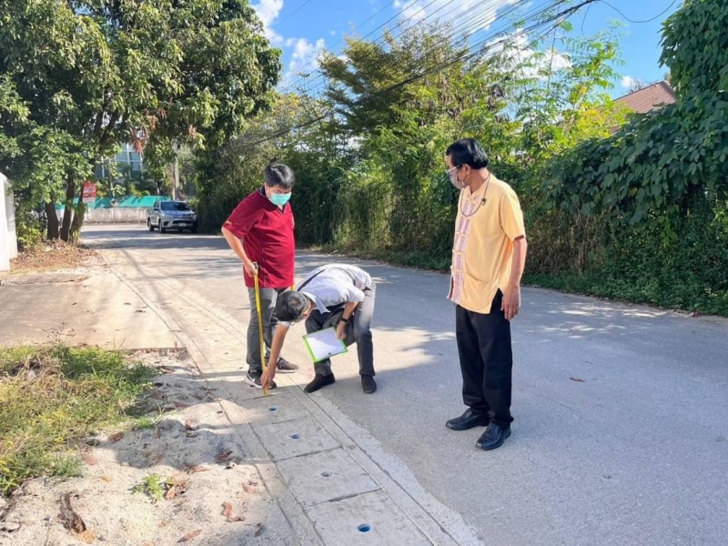 นายสุพจน์ แสงฉาย ปลัดเทศบาลตำบลสันกำแพง พร้อม คณะกรรมการลงพื้นที่ตรวจรับโครงการก่อสร้างรางระบายน้ำ ค.ส.ล. พร้อมฝาปิดคอนกรีตเสริมเหล็กที่บ้านคำซาว ม.4 ต.สันกำแพง