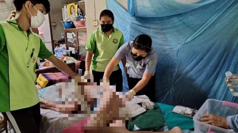 วันที่ 7 ธันวาคม 2565 ภายใต้การบริหารงานของว่าที่ร้อยตรีปัญญา อุ่นประดิษฐ์มอบหมายให้พยาบาลวิชาชีพชำนาญการ ร่วมกับนักกายภาพบำบัด แพทย์แผนไทย และ อสม. ต.ทรายมูลออกเยี่ยมบ้านเพื่อติดตามอาการผู้ป่วยติดบ้านหมู่ 3 ต.ทรายมูล จำนวน 1 ราย