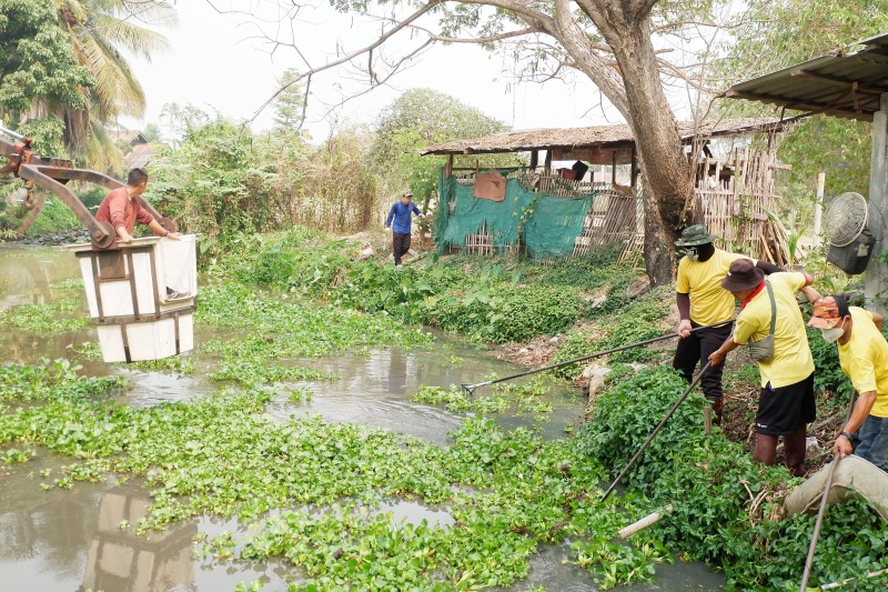 พัฒนาทำความสะอาด จัดเก็บผักตบชวา บริเวณสองข้างลำเหมืองสาธารณะ