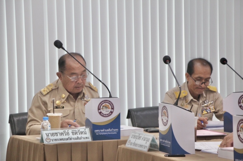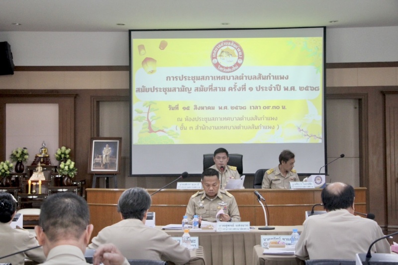 นายอดิเรก ขุนคงมี ประธานสภาเทศบาลตำบลสันกำแพง ดำเนินการประชุมสภาเทศบาลตำบลสันกำแพง สมัยสามัญ สมัยที่สาม ครั้งที่ 1 ประจำปี พ.ศ. 2568