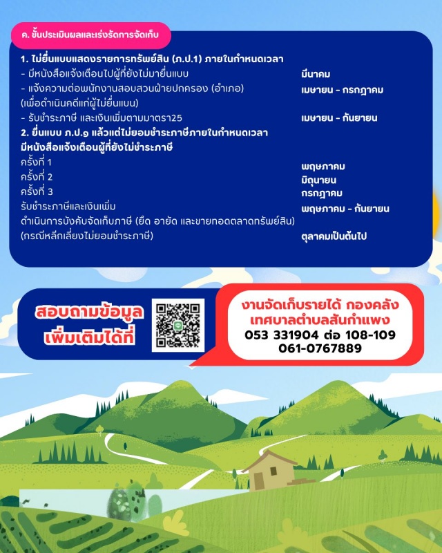 เทศบาลตำบลสันกำแพง ประชาสัมพันธ์แผนการปฏิบัติการจัดเก็บภาษีที่ดินและสิ่งปลูกสร้างและแผนปฏิบัติการการจัดเก็บภาษีป้ายประจำปี 2569 เทศบาลตำบลสันกำแพง