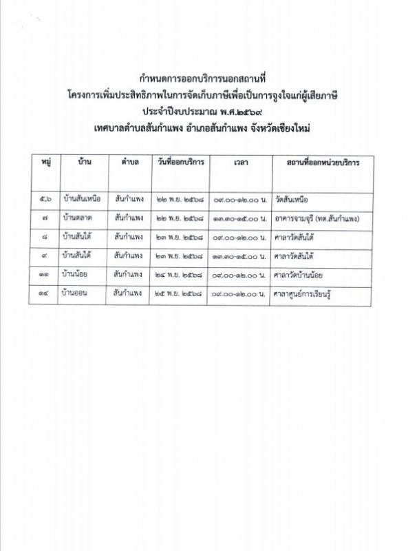 ประกาศเทศบาลตำบลสันกำแพง เรื่อง ประชาสัมพันธ์โครงการเพิ่มประสิทธิภาพในการจัดเก็บภาษีเพื่อเป็นการจูงใจแก่ผู้เสียภาษี ประจำปี 2569