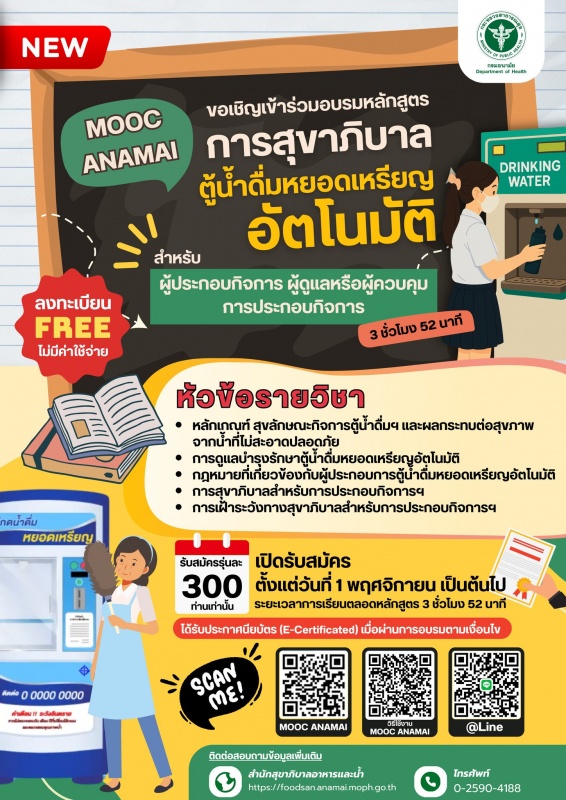 ประชาสัมพันธ์เชิญชวนสมัครเรียนหลักสูตร E – Learning ด้านการจัดการคุณภาพน้ำบริโภคในระบบ MOOC ANAMAI ประจำปีงบประมาณ 2569