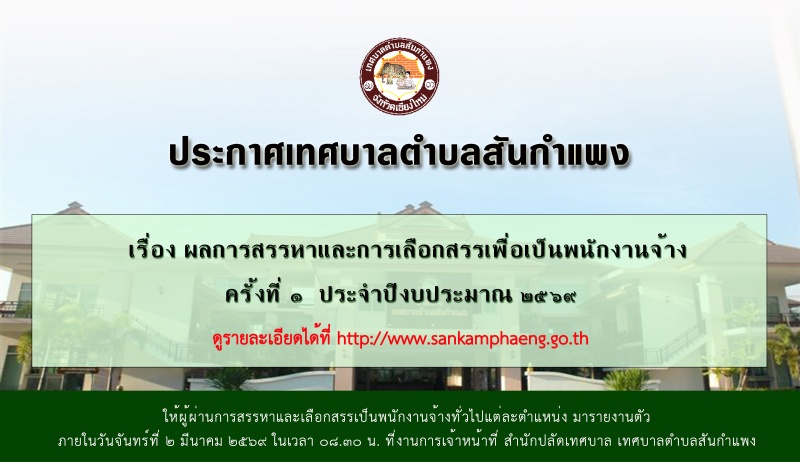 ประกาศ ผลการสรรหาและการเลือกสรรบุคคลเพื่อเป็นพนักงานจ้าง ครั้งที่ 1 ประจำปี พ.ศ.2569