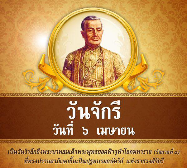 สืบเนื่องมาจากเมื่อวันที่ 6 เมษายน พ.ศ. 2325 พระบาทสมเด็จพระพุทธยอดฟ้าจุฬาโลกมหาราช หรือพระรามาธิบดีที่ 1 เสด็จปราบดาภิเษกขึ้นครองราชย์เป็นกษัตริย์แห่งราชวงศ์จักรี ดังนั้นในวันที่ 6 เมษายนของทุกปี จึงนับเป็นวันครบรอบการก่อตั้งราชวงศ์จักรี