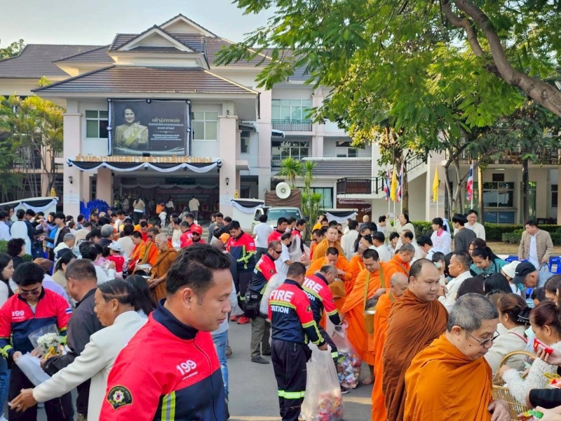 ร่วมพิธีบวงสรวงพระพรหมและปู่หนวด จัดพิธีทำบุญตักบาตรข้าวสารอาหารแห้ง พระภิกษุสงฆ์จำนวน 55 รูป เนื่องในโอกาส "วันขึ้นปีใหม่" ประจำปีพุทธศักราช 2569