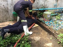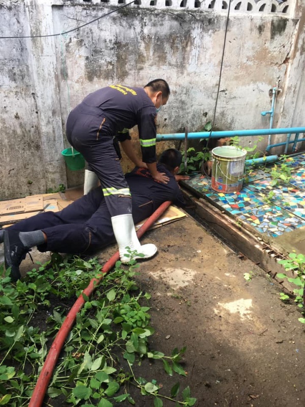 านป้องกันและบรรเทาสาธารณภัย สำนักปลัด โดยมี ผู้ใหญ่บ้านหมู่ที่7 ตำบลสันกำแพง ร่วมกันใช้เครื่องมือฯดันท่อระบายนำ้อุดต้นข้างร้านก๋วยเตี๋ยวลุงเชย ม.7 ตำบลสันกำแพง