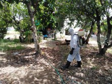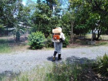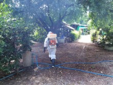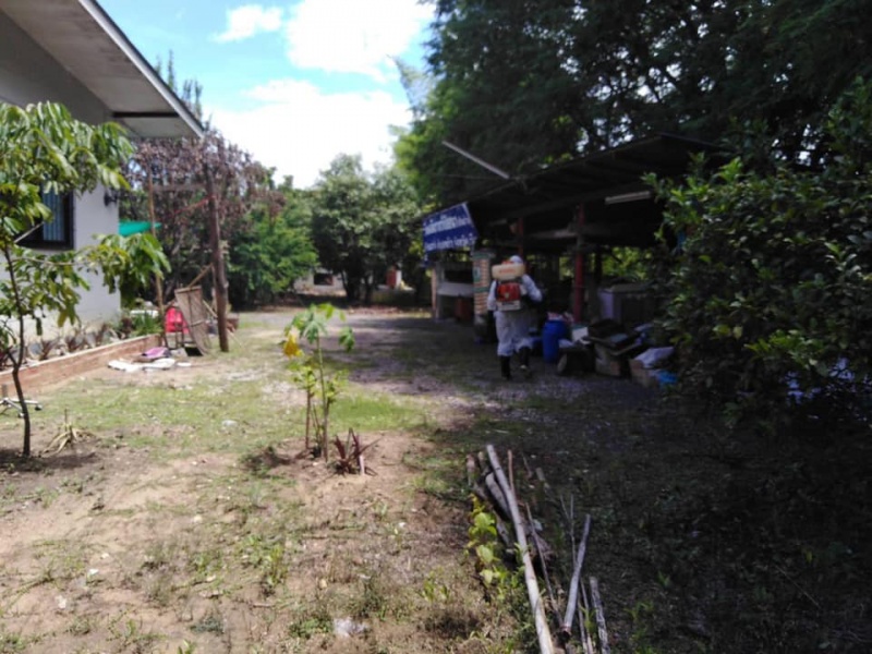 เจ้าหน้าที่กองสาธารณสุขและสิ่งแวดล้อม ดำเนินการพ่นละอองฝอยULVเพื่อกำจัดยุงพาหะโรคไข้เลือดออกพ่นสายพันธุ์เดงกิ ในหมู่ที่ 8 ต.สันกำแพง